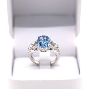 @sunshine4121 Center stone is aquamarine. Side stones are diamonds!