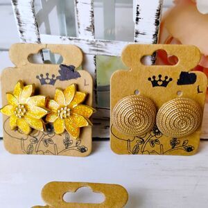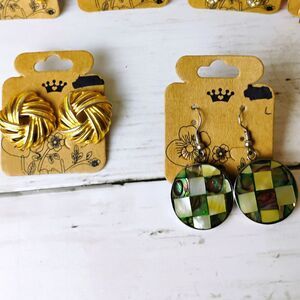 5 Chic Earrings Semi Precious Stones, Gold Tone Round, Flower, Vintage EUC