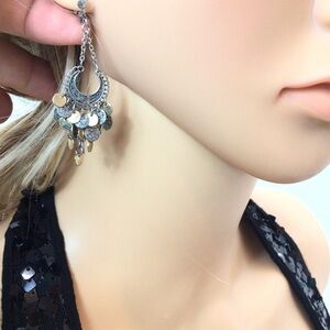 - (1) pair of antique gold and silver-tone dangle earrings. Approx 2” long.