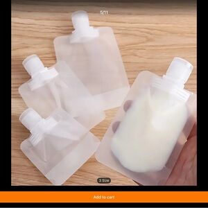 Set of Five clear leakproof refillable travel bottles. Perfect for lotions and liquids. Compact and easy to use travel containers.