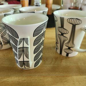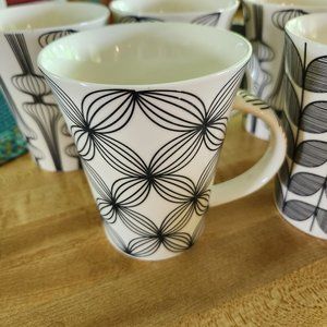 5 Coffee Mugs Black and White Modern Graphic Design 10 oz Kitchen Details