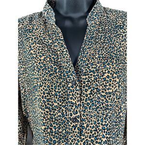 5--- Daytrip Buckle Sheer Lace Back Blue Black Brown Cheetah Blouse Size Small