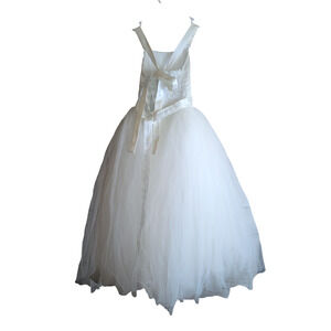 PLAY Dollcake A Hint Of White frock. White glittery bodic with full tulle skirt. Removable rosette sash/belt. Smocked back. Minimal overall wear, listing in PLAY for small runs in tulle and hole in tulle