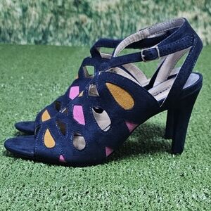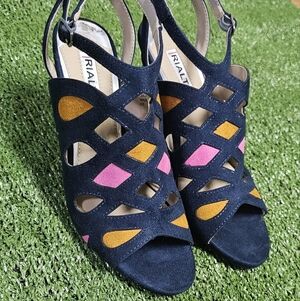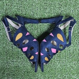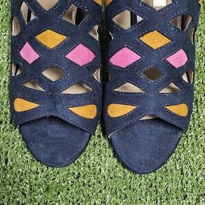 DARK NAVY WITH A PINK AND MUSTARD COLOR