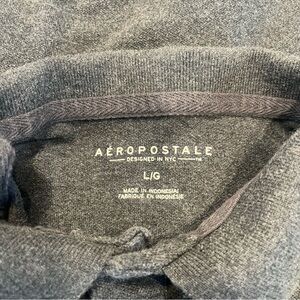 Classic gray polo shirt with a button-up collar. Features the Aeropostale logo on the chest.