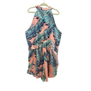 ☀️Good used condition! Spring summer pink blue floral jumpsuit romper. Zipper back. Fits like 10/12 girls