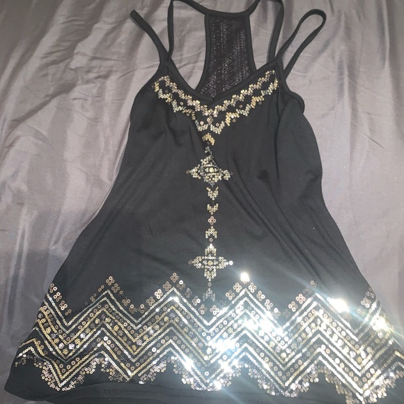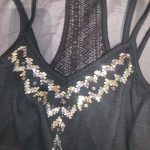 Black tank top with sequence and mesh on the back