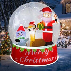 Durable Material: Constructed with high-quality, weather-resistant materials, this inflatable snow globe is designed to withstand various weather conditions. It's perfect for outdoor display and can be a festive addition to your Christmas decor season after season.s a touch of holiday cheer to any setting, making it a delightful decoration for your home during the festive season.