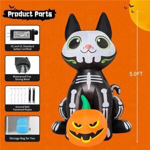 5 FT Halloween Inflatables Skeleton Cat Outdoor Decorations Blow Up Yard