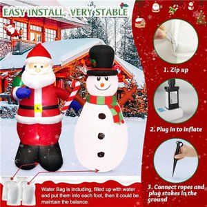 🧿 Self-inflates in Minutes: Our blow up Christmas yard decorations - Santa Claus inflatable and Snowman Christmas decorations are easy to install, just plugged in and the powerful built-in fan in it can inflate itself instantly. Everything pops up in a moment! Don't forget to zip up the bottom zipper before inflated. After use, you can unplug the socket and open the bottom zip to quickly release the air.