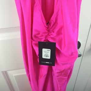 Stunning fuschia dress! Full back exposure with ruching at the bottom area. Front side left split. Size M. NEW with TAGS. Accepted orders before 4PM EST ship same day!