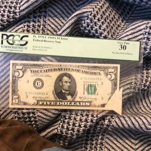 Graded VF 30 this $5 bill with Pre Face Print Foldover Error has excellent eye appeal and guarantees to be a conversation starter.