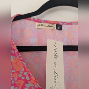Brighten your wardrobe with this vibrant floral V-neck ruffle top. Perfect for any occasion.