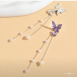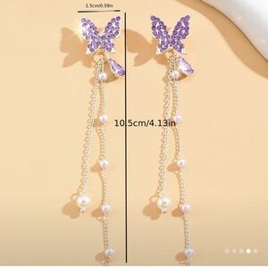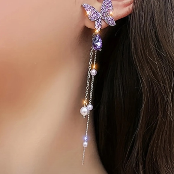 Elegant Butterfly Dangle Earrings with Sparkling Rhinestones & Pearls - Versatile Long Drop Earrings |Zinc Alloy Earrings