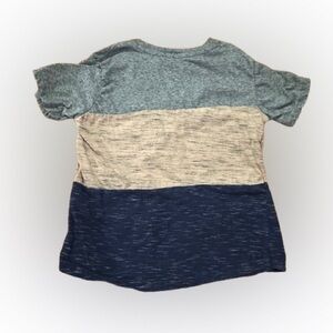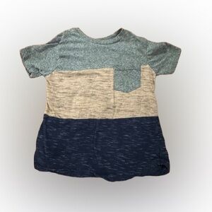 Comfortable and stylish kids' t-shirt with a tri-tone design in blue, gray, and cream. Ideal for casual outings.