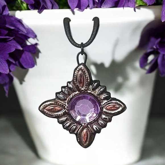 5 For $25💫3-D Jeweled Purple Gemmed Pendant Necklace