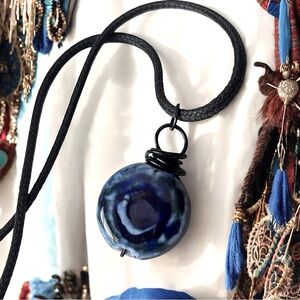 5 For $25💫Blue Tie-Dye Swirl Ceramic Pendant Necklace