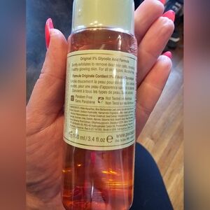 Award-winning highly concentrated facial toner, infused with 5% Glycolic Acid, deeply cleanses pores by sweeping away excess oil and impurities for balanced, soothed, prepped and radiant skin.