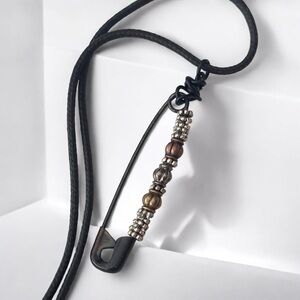 5 For $25💫Punk Rocker Black Safety Pin Beads Pendant Necklace