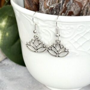 5 For $25💫Silver Lotus Flower Dangles Earrings