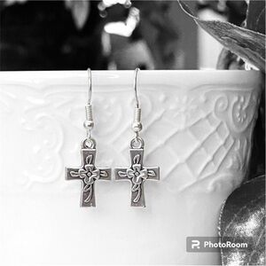 5 For $25💫Silver Rose Cross Earrings