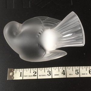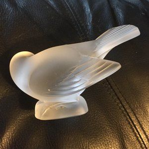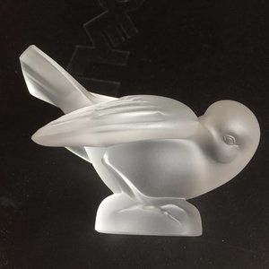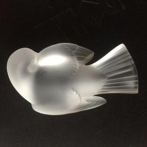 Signed Lalique France frosted Crystal Sparrow PAPERWEIGHT / Figurine Moineau Coquet in excellent preown condition with a tiny speckle-like nick on right wing.