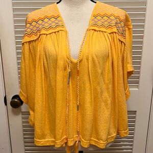 5. Free People Market Embroidered V Neck Top in Carrot Ginger, Size Large