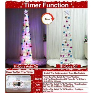 5 Ft Pop Up 3D Star Christmas Tree Tinsel with 50 Color Lights Timer (White)