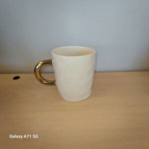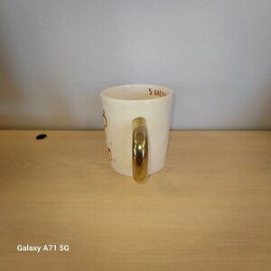 Celebrate the festive season with the Angela Staehling Booville by Magenta Mug, adorned with five golden rings. Ideal for tea, coffee, latte, and espresso, it features a luxurious gold handle.