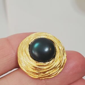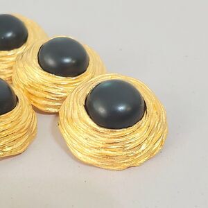 Set of 5 Gorgeous 25mm 1 Inch Gold Shank Buttons with a very Dark Green (almost black) center Crafts Replacement