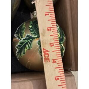 5- Green Gold hand crafted glass Xmas ornaments onion tear drop Glitter Leafs