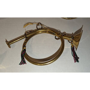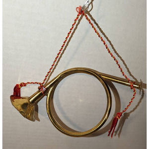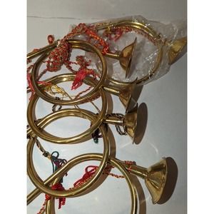 Lot of 5 Handmade India Exotics. Vintage Brass French Horn Bugle Tassel Rope Ornaments Christmas