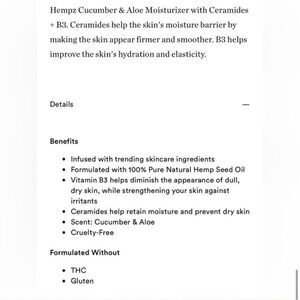 $5🌟 Hempz Cucumber & Aloe Herbal Body Moisturizer Ceramides + B3