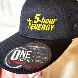 5 Hour Energy One Touch Seam Free Hat Outdoor Cap Black M/L Brim Sticker