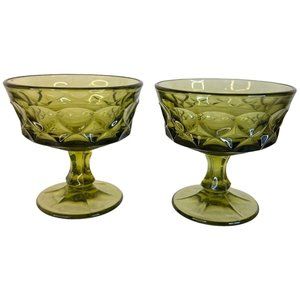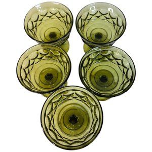 5 Indiana Carnival Glass Compote Kings Crown Thumbprint Sherbet Avocado Green