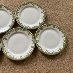 5 Jackson China Vintage Green & White 7” Plates. Plates are about 7 1/4”. They are in great condition, not much wear, no chips or cracks.