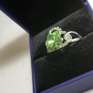 Amazing Swarovski Crystal Green Design Flower Ring Exquisite Design on Rhodium like Platinum Tarnish free