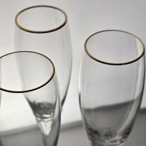 Elegant Lenox Erica Gold Champagne Glasses, perfect for toasting occasions. These fine crystal glasses with gold rims add sophistication to any table setting. Ideal for serving prosecco or other sparkling beverages.