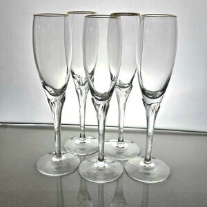 5 Lenox Erica Gold Champagne Glasses 9.25" fine crystal gold rim toasting presec