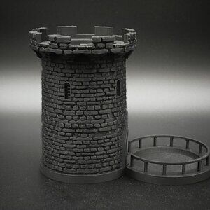 Crafted from high-quality plastic, this tower is designed for durability and can be used as-is or painted to bring out the intricate details. It accommodates all typical D&D dice except for a large D30 die. The included light can be easily turned on and off and has replaceable batteries.
