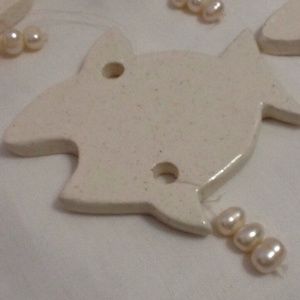 5 ivory colored ceramic fish Made from white sand infused clay, glazed with clear, glossy finish.