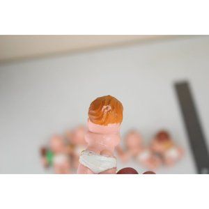 Listing is for 5 babies as shown. Good, clean condition with some surface scratching and dings from age and storage. Diapers no longer change color.