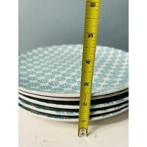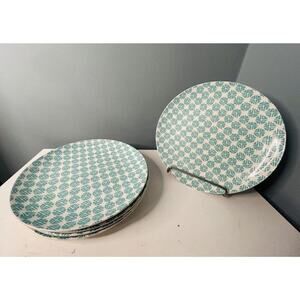 (5) Mainstays Aqua Teal White Dinner Plates 10.25 Inch Diameter Great Condition