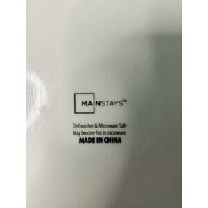 Great condition. No chips or cracks. Some use, but overall good condition. This product is a set of five Mainstays dinner plates in a teal color. Each plate has a diameter of 10.25 inches and is made of ceramic. The plates are in great condition and have a height of 1 inch. The set weighs 7 pounds 6 ounces.