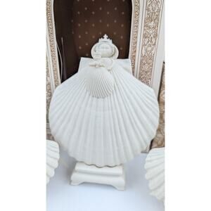 5 Margaret Furlong Porcelain Shell Angels Ornaments Lot - Madonna Snowflake Iris