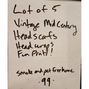 5 Mid Century Patterned Silk Fabric Head Scarves Polka Dots Stripes Floral 1960s