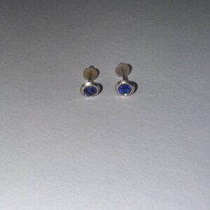 5 Mm Round Sapphire Blue Cz And Sterling Post Earrings