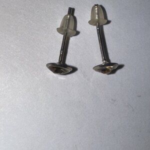 5 mm Round Cz and sterling silver post earrings. 5mm in size come with a silicone stoppers. The center Cz stone is actually 3mm. These will be shipped with an anti-tarnish paper in the baggie with the earrings so they don't tarnish as fast.