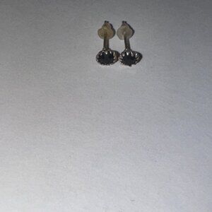 5 mm Star Cz and sterling silver post earrings. 5mm in size come with a silicone stoppers. The center Cz stone is actually 5mm. These will be shipped with an anti-tarnish paper in the baggie with the earrings so they don't tarnish as fast. These are round but they shaped like a star due to the design on the earring face.