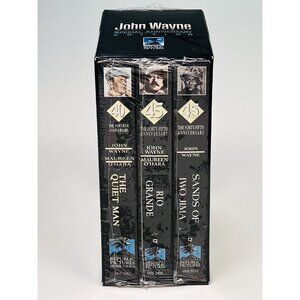 45th Anniversary set (including Sands of Iwo Jima, Rio Grande, and The Quiet Man) is new and sealed). The Alamo and The Cowboys are in excellent used condition and have been tested and work. Please carefully inspect photos for full condition and item details. From a smoke-free environment.